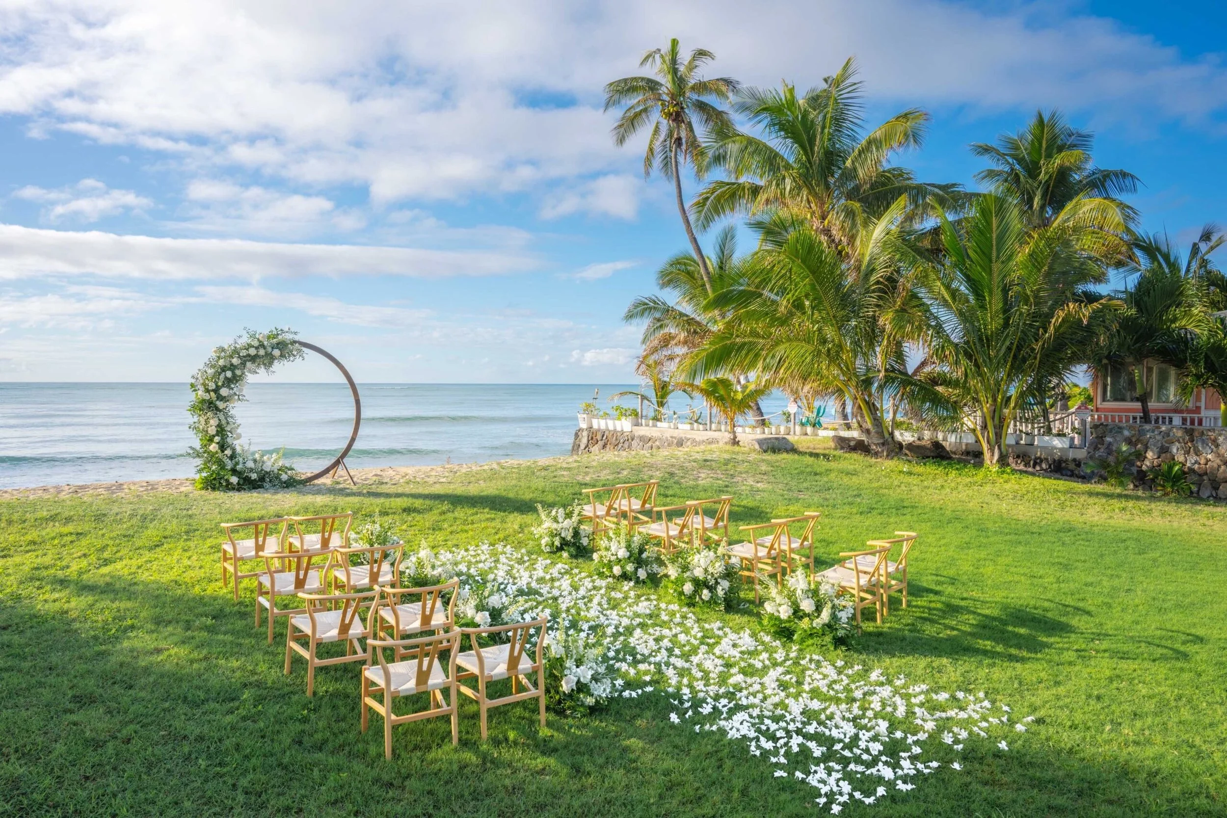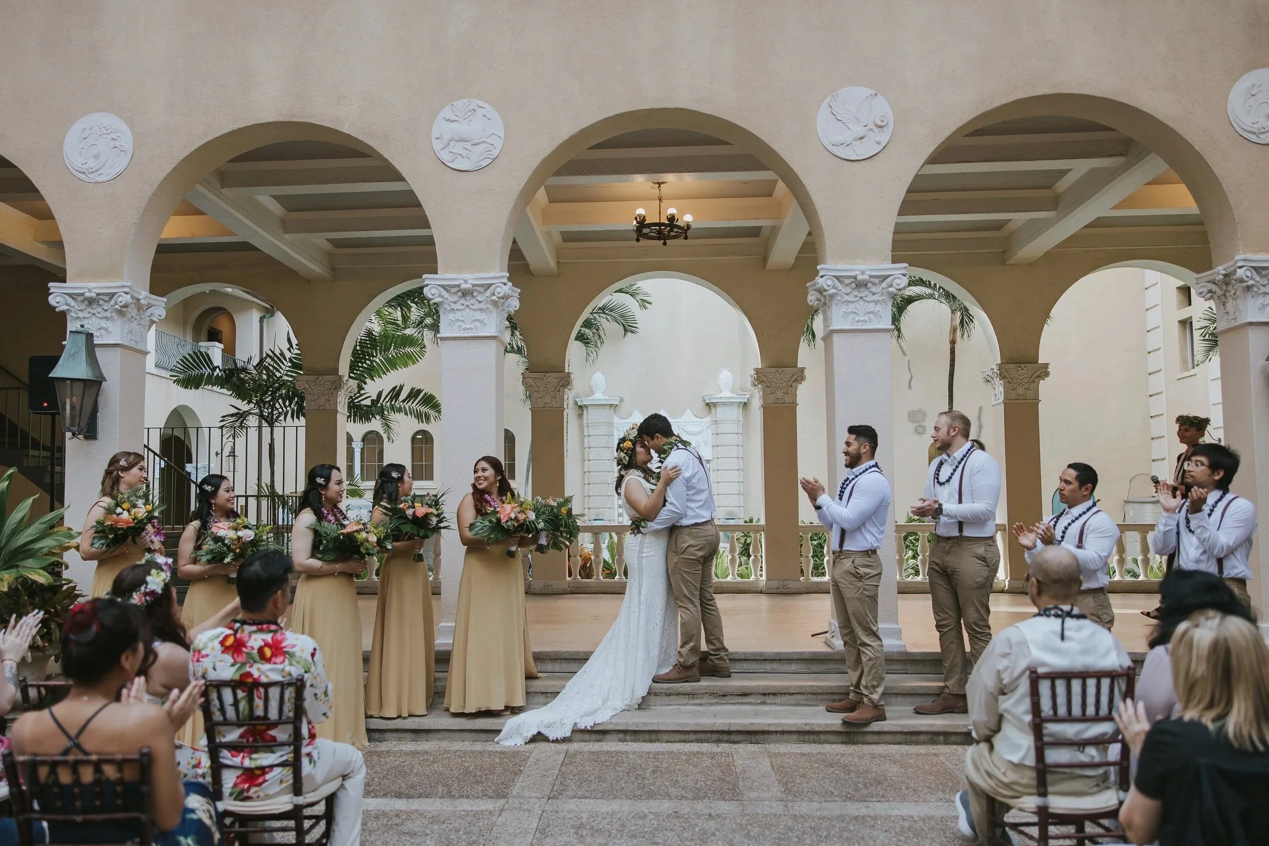 Oahu offers an unbeatable blend of natural beauty, accessibility, and cultural richness that makes it an ideal wedding destination. Iconic beaches with golden sand and turquoise waters provide stunning ceremony and photo backdrops, while dramatic cliffs, lush valleys, and serene mountain vistas offer diverse settings from intimate elopements to grand celebrations. Honolulu’s international airport and wide range of accommodations make travel and logistics easy for couples and guests, and experienced local vendors — officiants, photographers, planners, florists, and caterers. The island ensures smooth, authentic Hawaiian experiences; year-round warm weather, spectacular sunsets, and opportunities for beachside ceremonies, sunset sails, or private garden gatherings add romance and flexibility. While the island’s rich Polynesian culture, traditional music and hula, fresh local cuisine, and welcoming aloha spirit create meaningful, memorable ceremonies infused with local flavor.